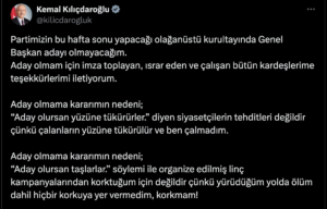 KILIÇDAROĞLU’NDAN SÜRPRİZ AÇIKLAMA: “OLAĞANÜSTÜ KURULTAYDA ADAY OLMAYACAĞIM ÇÜNKÜ; “